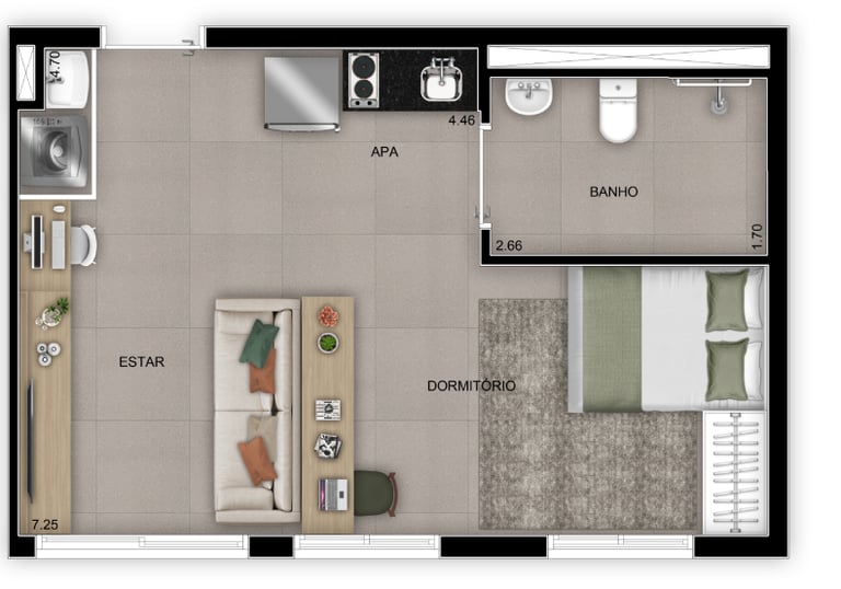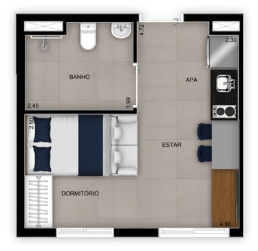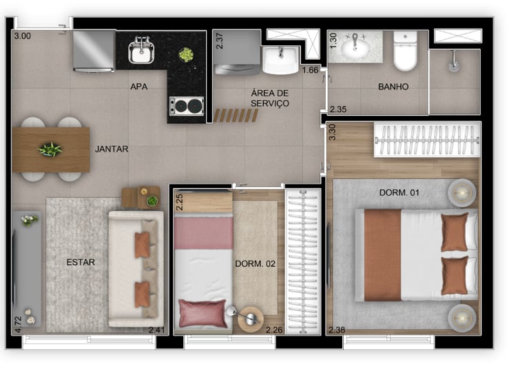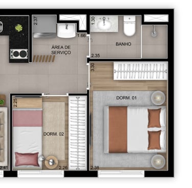 60 a 77 m² | 1 a 3 Dorms